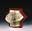 Buch gefaltet; das Objekt steht auf einem schwarz lackierten Holzsockel mit einer eingelegten rot lackierten Holzleiste. |